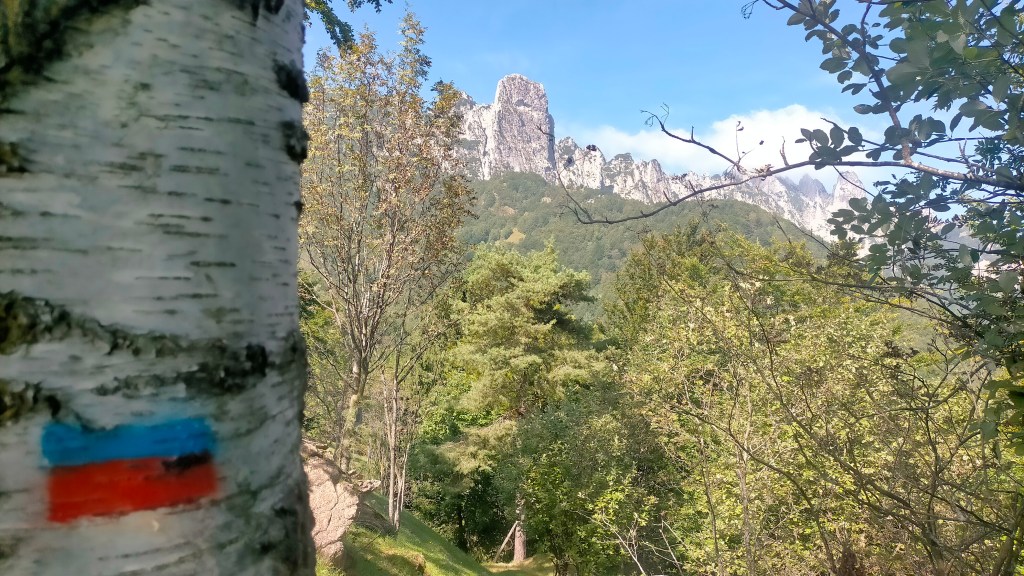 1. da Montecchio alla Baita della Croce dei Massignani (proprio a metà del percorso integrale, sempre aperta con possibilità di dormire al coperto e dotata di piccola cucina – rifornirsi d’acqua al Roccolo Rossato!);