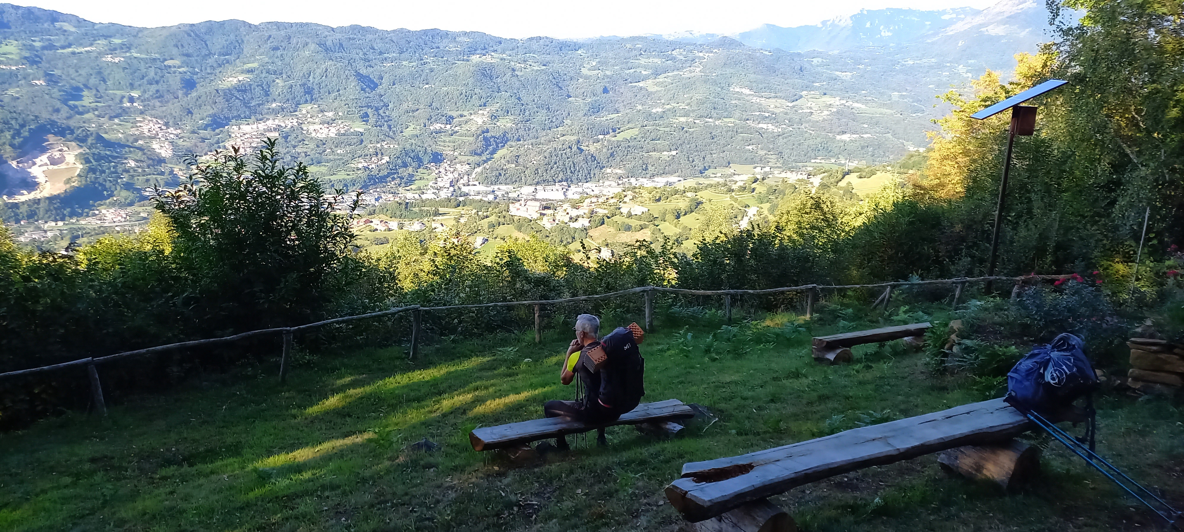 - Si continua nel bosco che scende a una radura con panchina, prima di rientrare tra gli alberi, per svoltare subito a sinistra (andando dritto si arriva alla Baita della Croce dei Massignani, dove si può dormire, dotata di ampia cucina e spazi per riposare) e prendere il sentiero di cresta che porta alla Croce dei Massignani e al ballatoio roccioso che fa da cornice all’osservatorio con pulpito orografico.