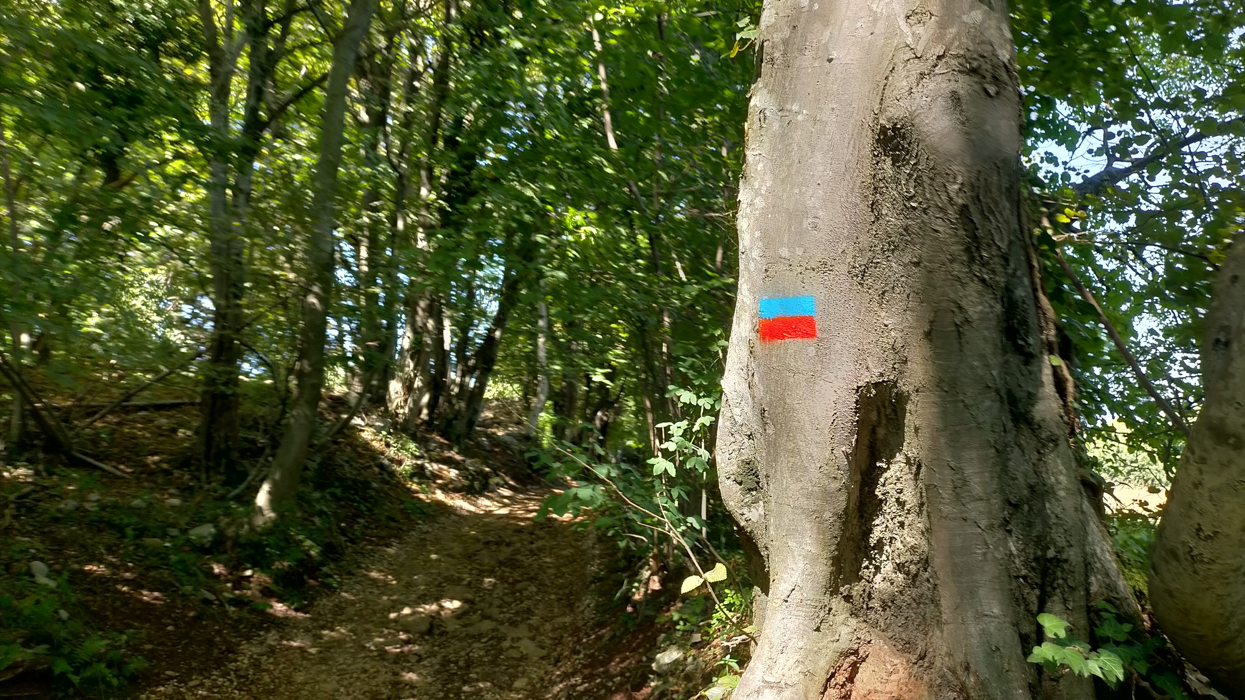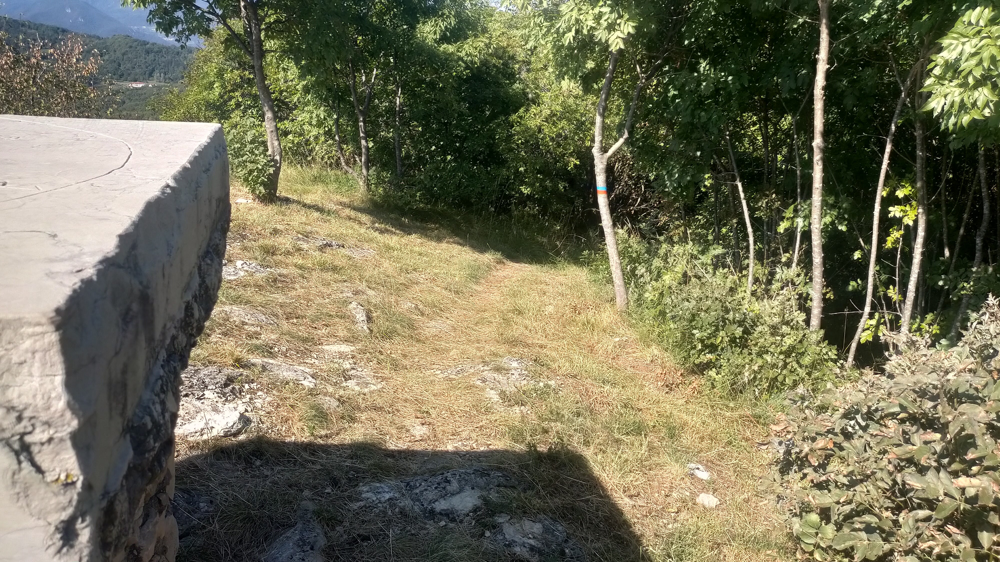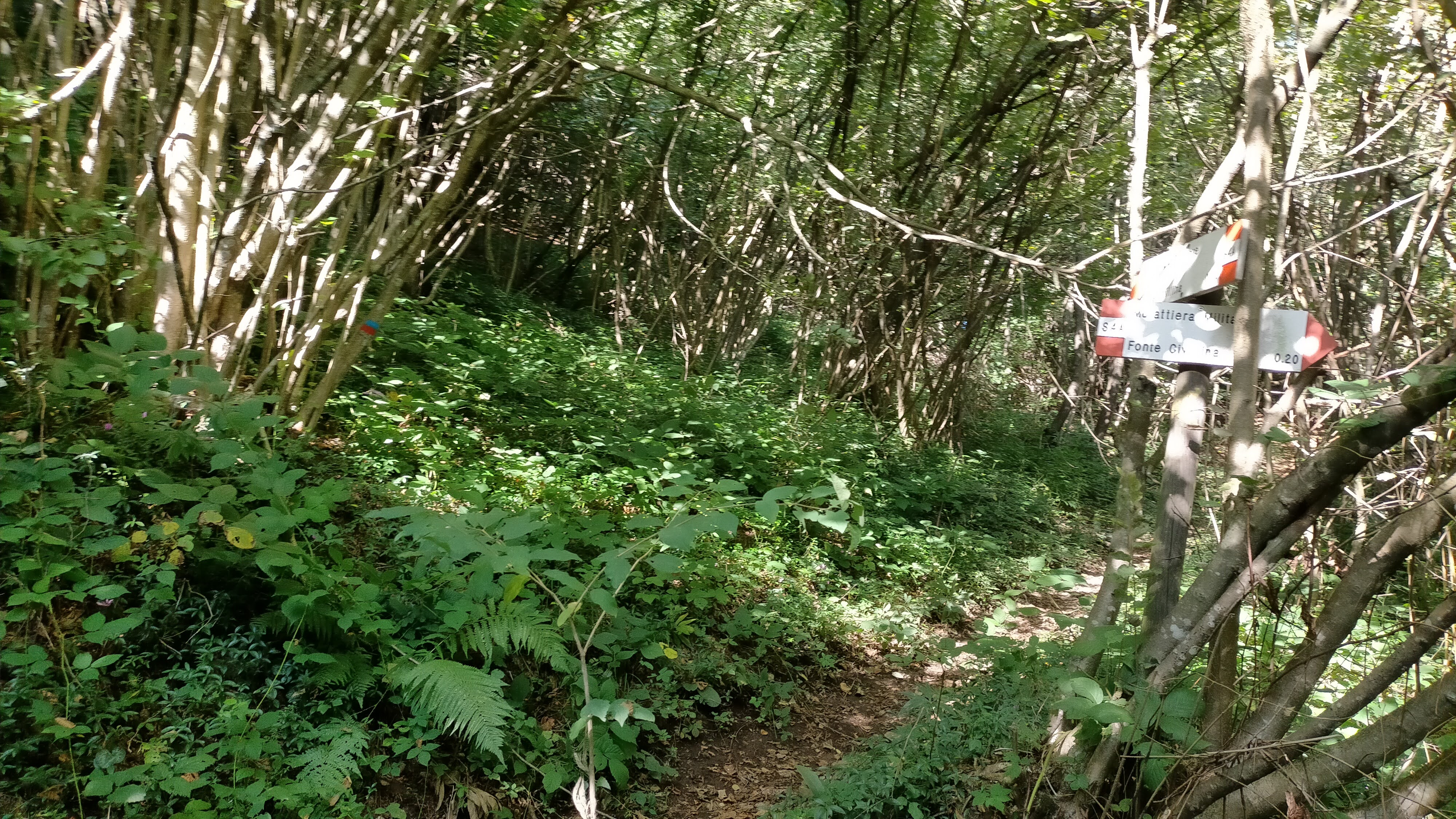 - Si prosegue a destra, su sentiero inizialmente (possibilità di salire al Verlaldo, 40 minuti andata e ritorno), poi per strada bianca, del Monte Nudo (con caratteristica casa abbandonata) fino ad una curva evidente prima del rettilineo in salita che porta alla Contrada Zattra.