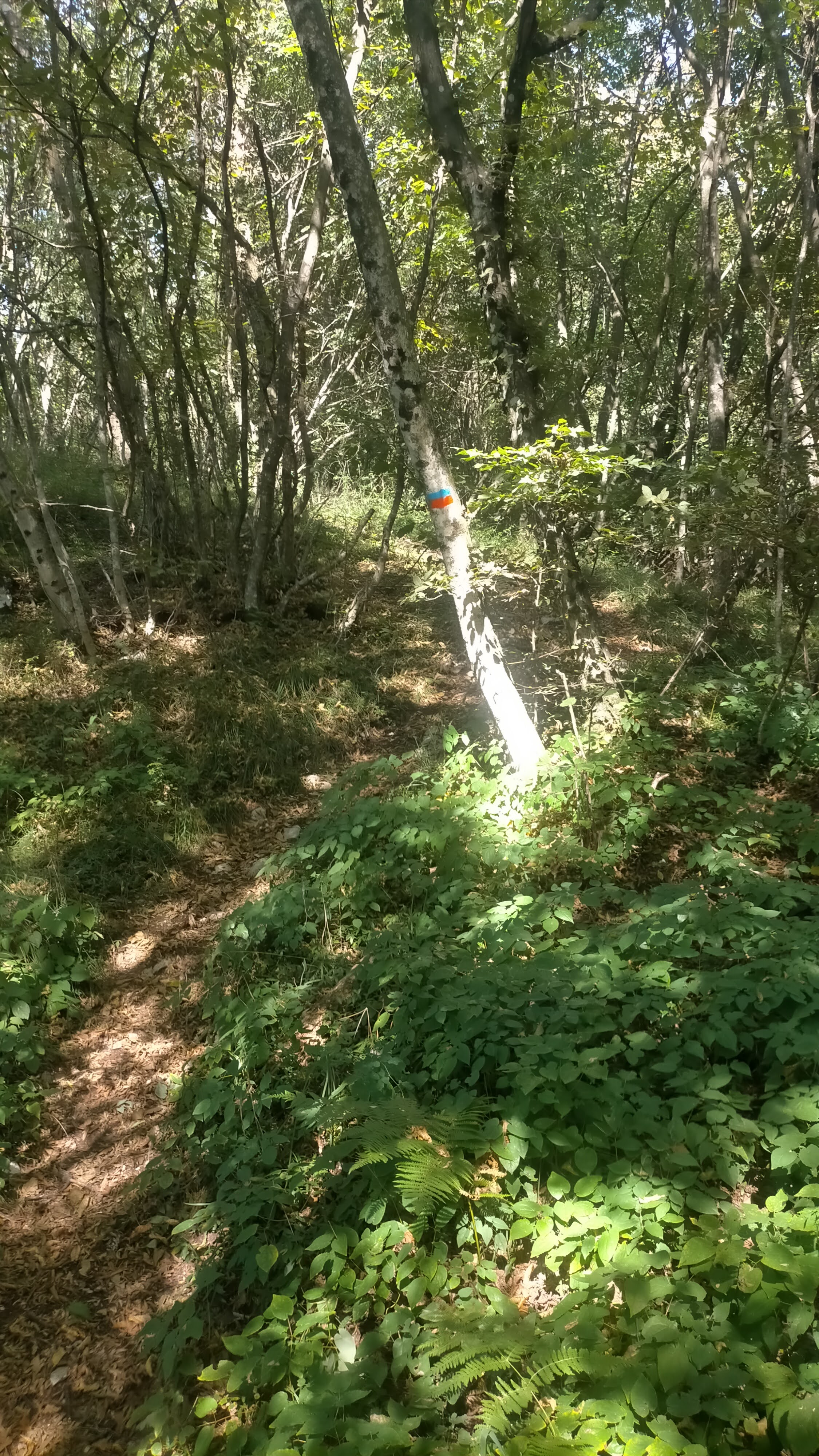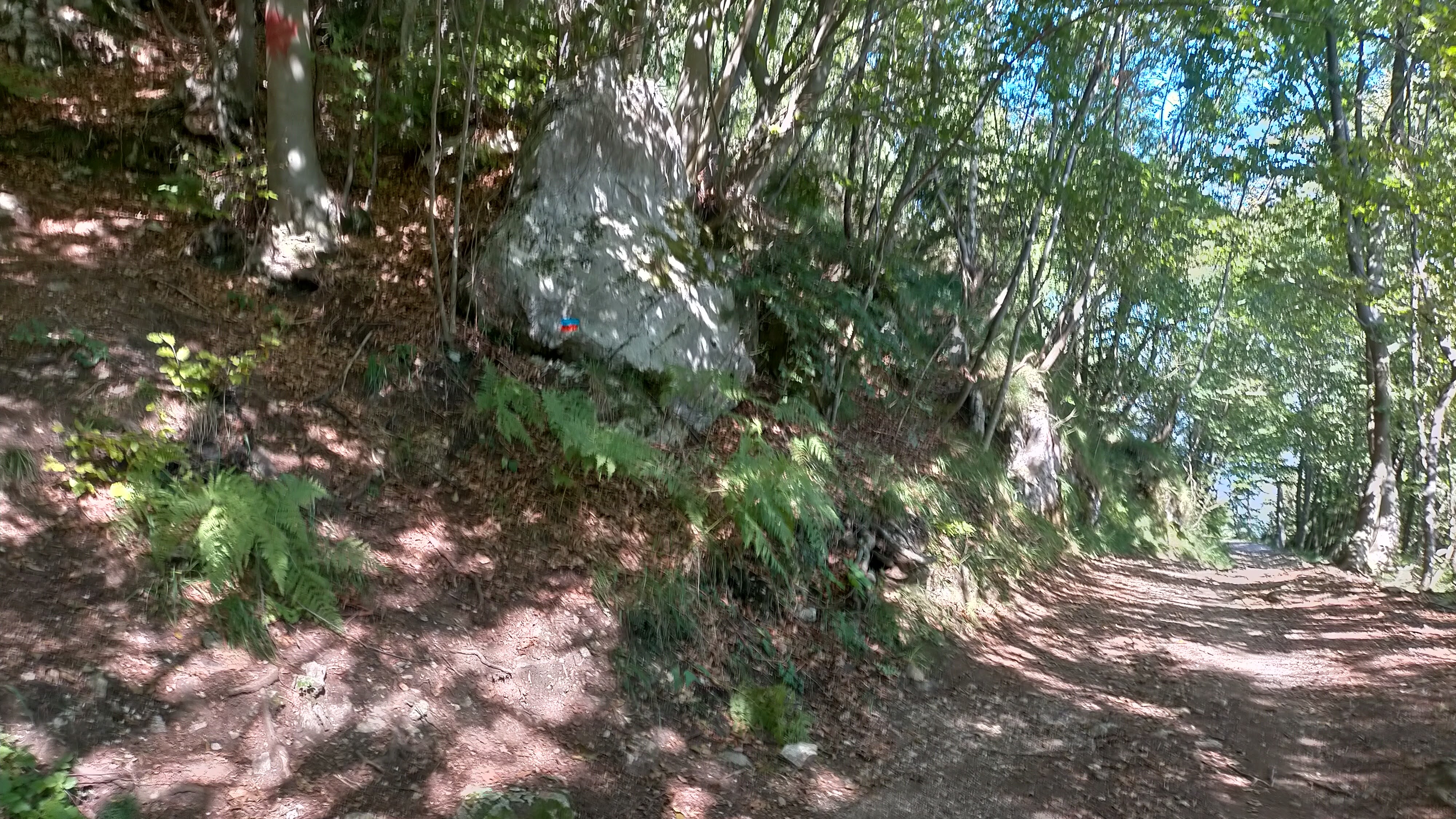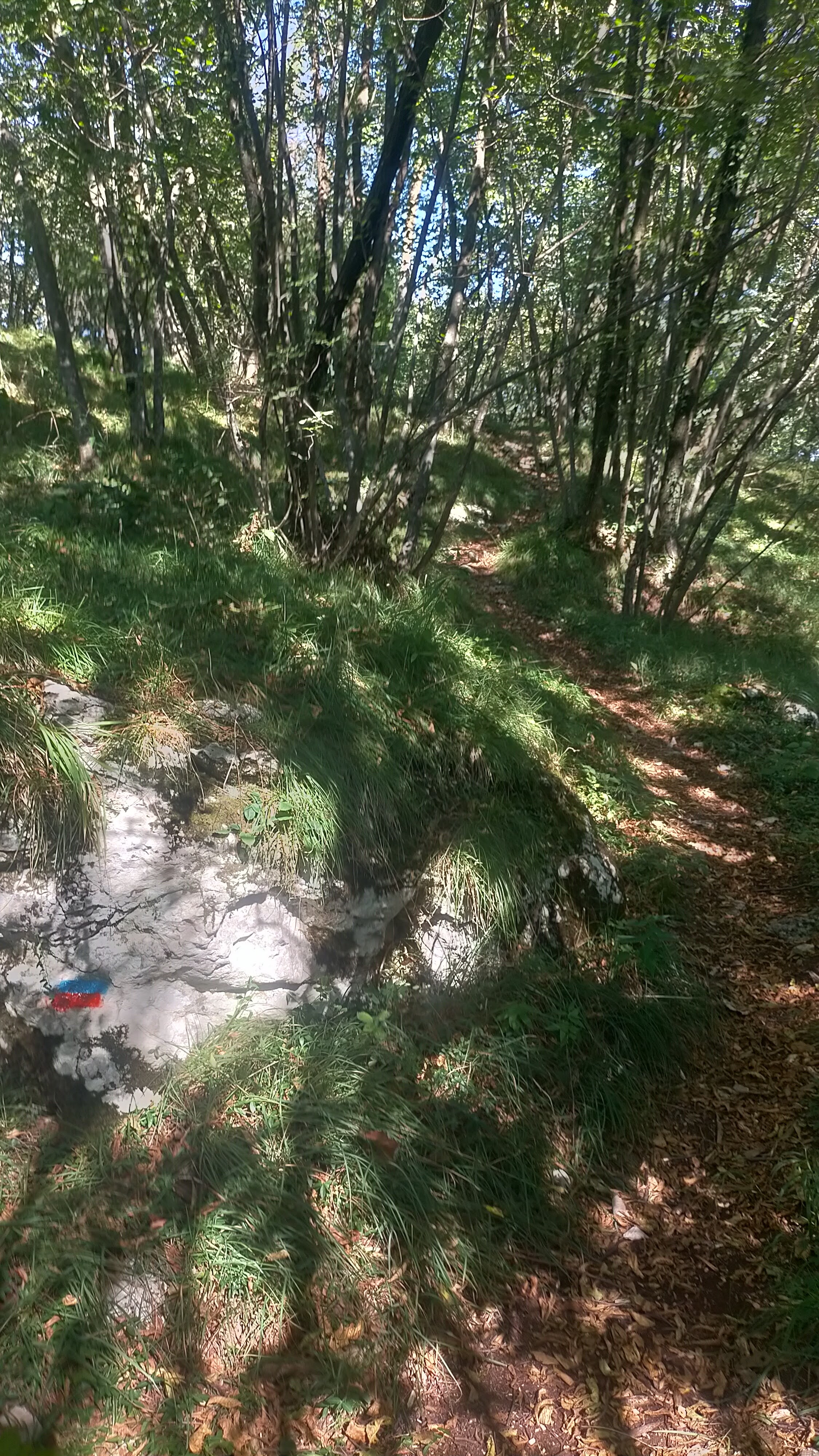 - Si prosegue a destra, su sentiero inizialmente (possibilità di salire al Verlaldo, 40 minuti andata e ritorno), poi per strada bianca, del Monte Nudo (con caratteristica casa abbandonata) fino ad una curva evidente prima del rettilineo in salita che porta alla Contrada Zattra.